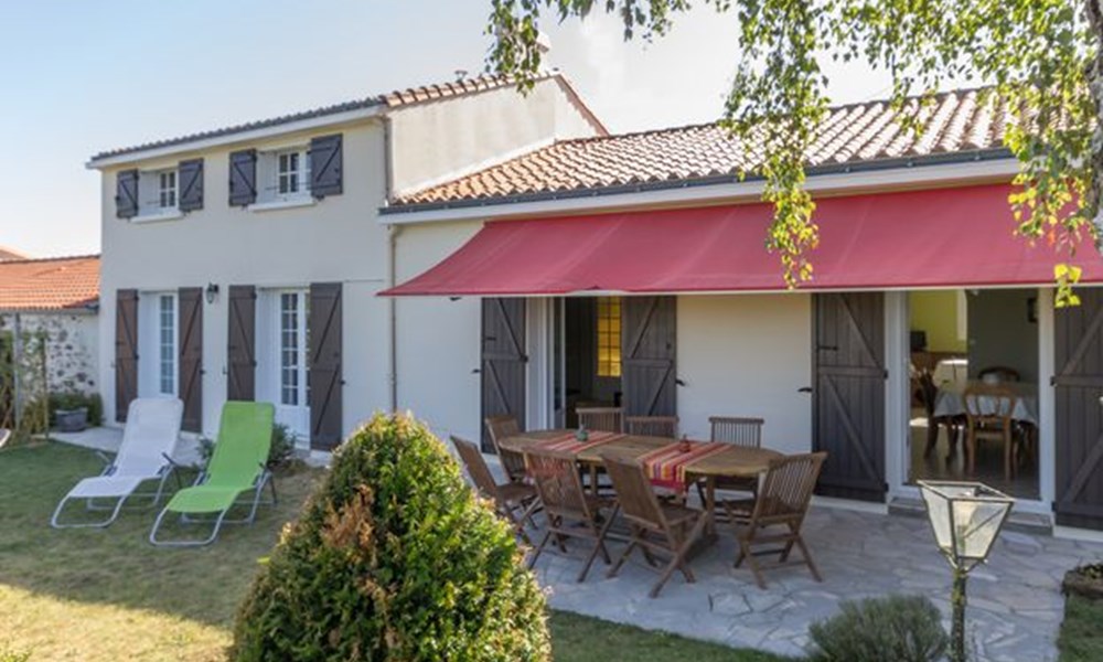 Deux portes fenêtres vous mènent à la terrasse exposée sud, équipée d'un salon jardin pour 8 personnes, 4 transats. Un barbecue est à votre disposition. Vous profiterez d'une vue très agréable sur les vignes et la nature.